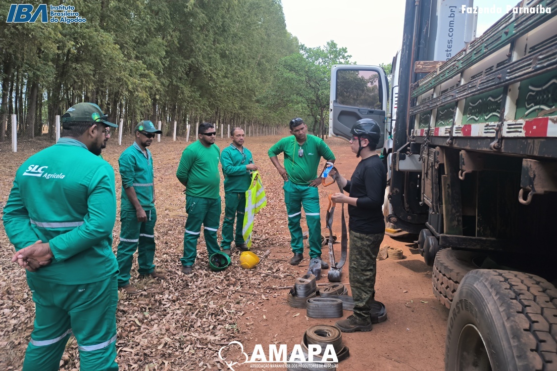 A Associação Maranhense dos Produtores de Algodão (AMAPA), com o apoio do Instituto Brasileiro do Algodão (IBA), realizou nos dias 08 e 09 de outubro, na associada Fazenda Parnaíba, o Treinamento de Segurança na Operação com Munck. A capacitação contou com carga horária de 16 horas, ministrada pelo instrutor Brendo da Silva Veras, Técnico em Segurança do Trabalho e Bombeiro Civil, e foi realizada em parceria com a empresa Alfa Treinamentos.