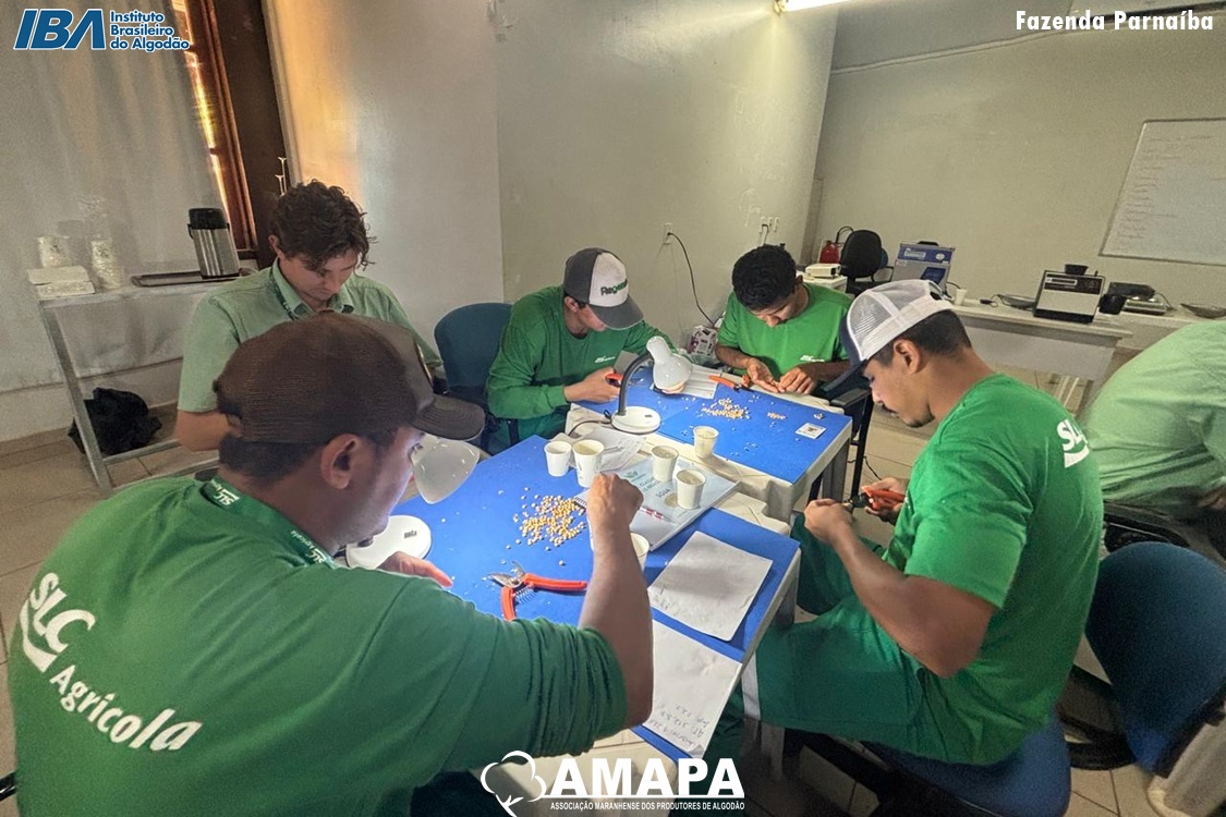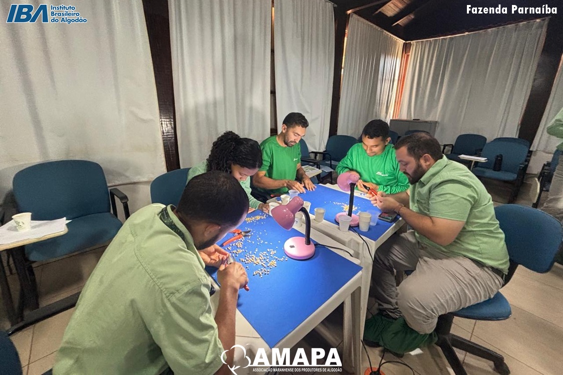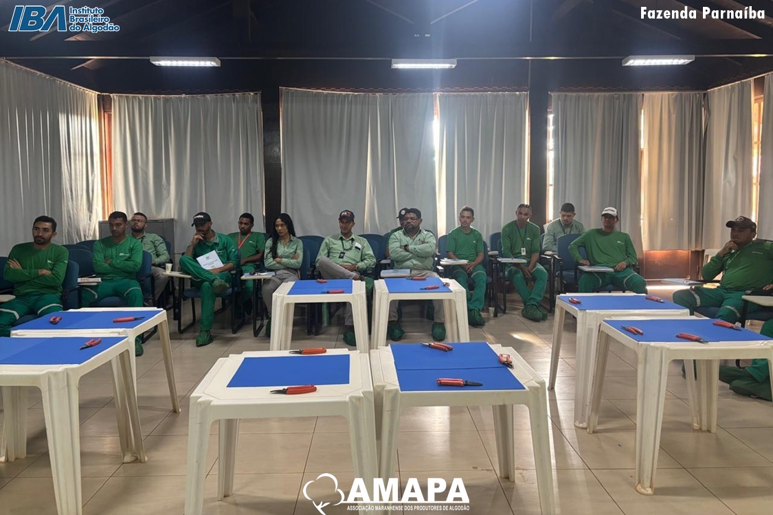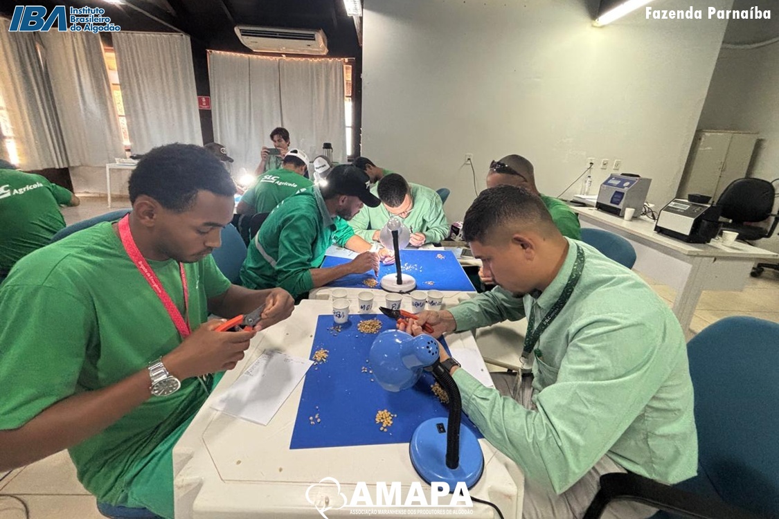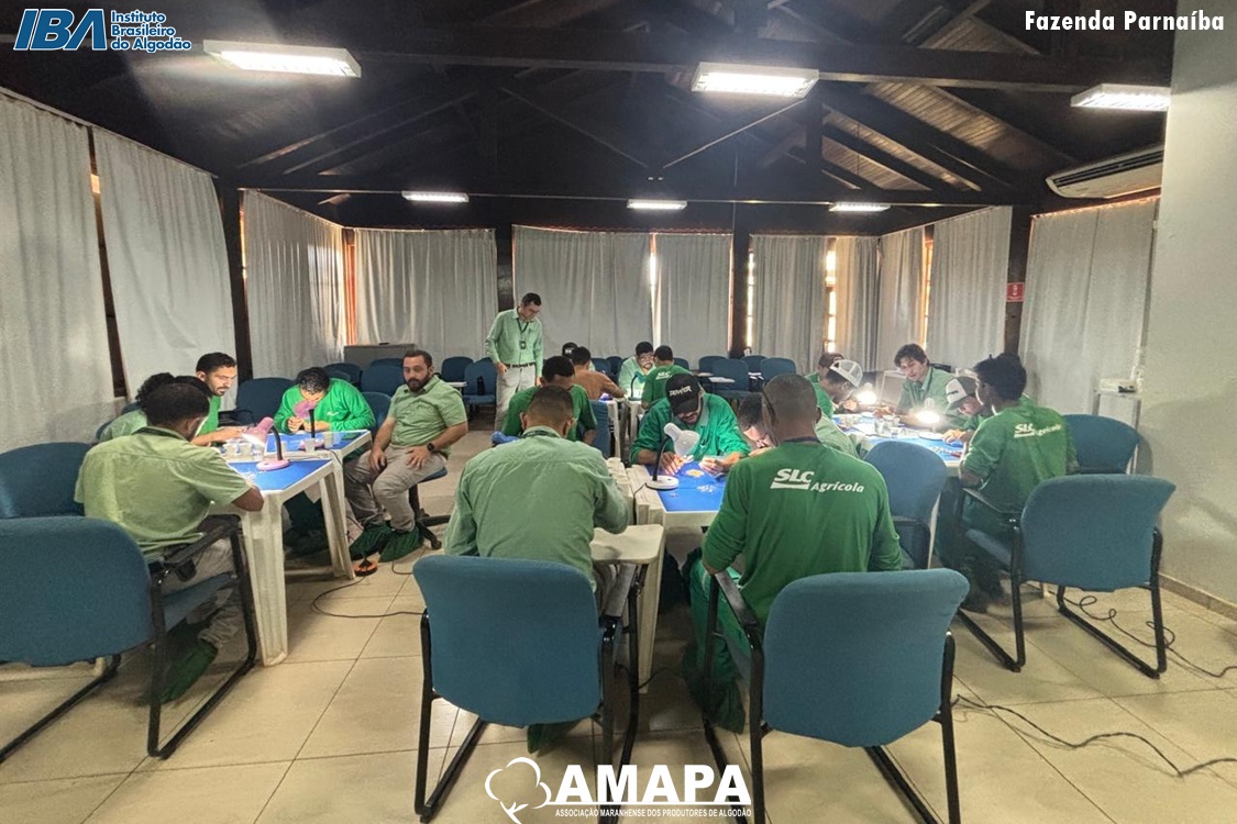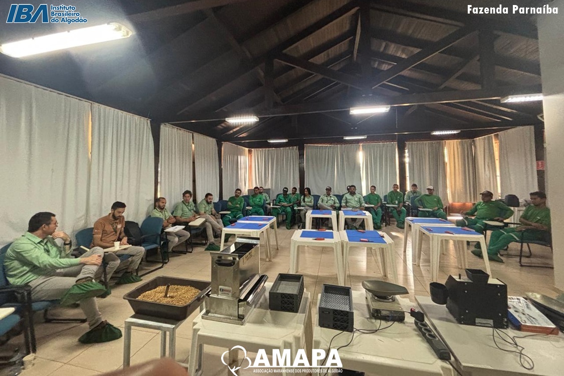 A Associação Maranhense dos Produtores de Algodão (AMAPA), com o apoio do Instituto Brasileiro do Algodão (IBA), promoveu nos dias 21 e 22 de outubro um Treinamento de Classificador de Grãos na associada Parnaíba. A capacitação, com carga horária de 16 horas, qualificou com sucesso 19 colaboradores, alcançando 100% de aprovação.