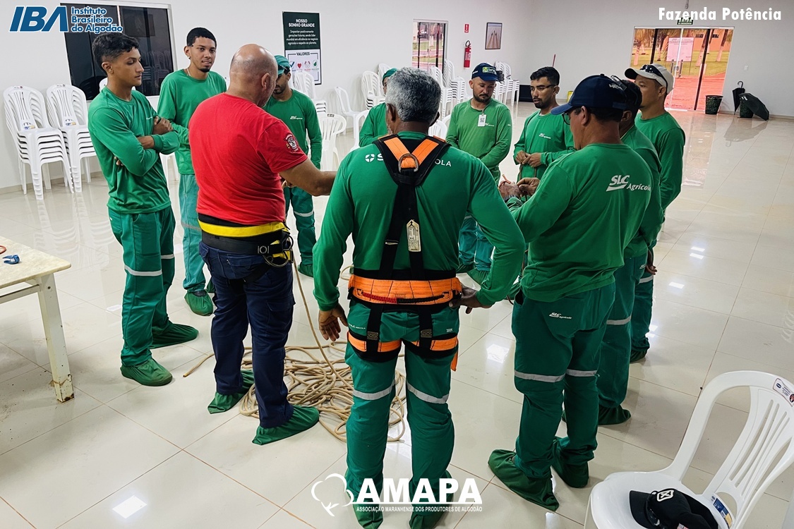 A Associação Maranhense dos Produtores de Algodão (AMAPA), com o apoio do Instituto Brasileiro do Algodão (IBA), realizou nos dias 26 e 27 de fevereiro dois treinamentos voltados à segurança e à qualificação profissional de colaboradores na associada Potência Sede II.
